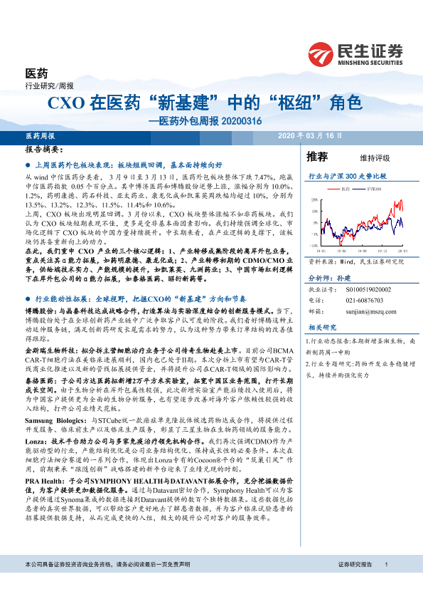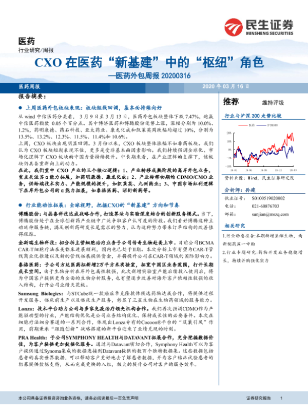 【民生证券】【20200316】CXO在医药“新基建”中的“枢纽”角色-16页