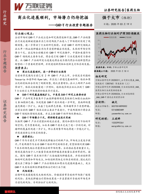 【万联证券】【20200319】CAR-T行业投资专题报告:商业化进展顺利,市场潜力仍待挖掘-21页