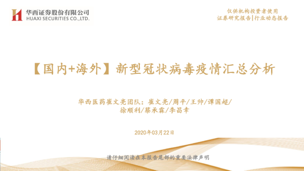 【华西证券】【20200322】医药生物:【国内+海外】新型冠状病毒疫情汇总分析-23页