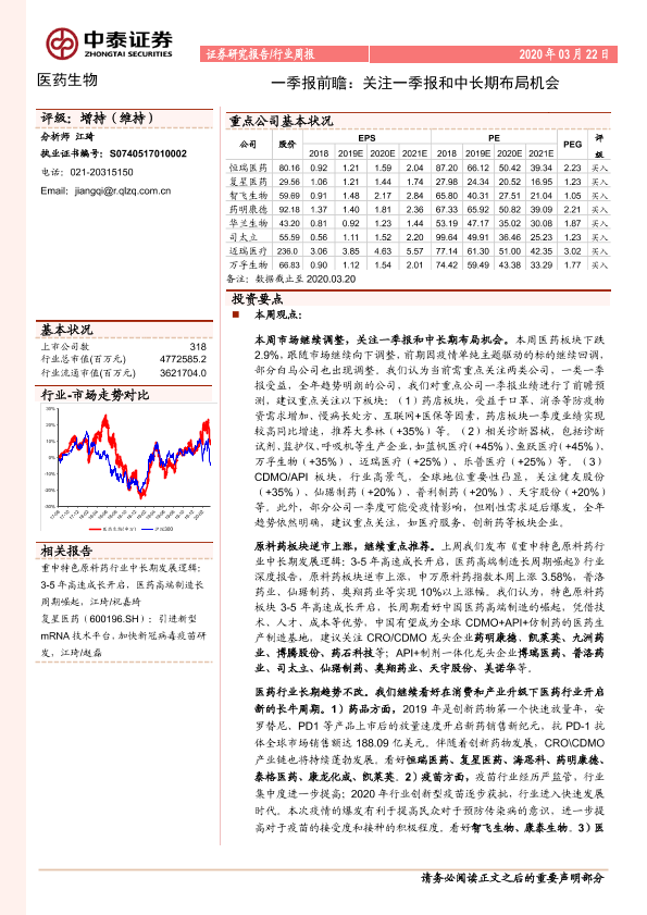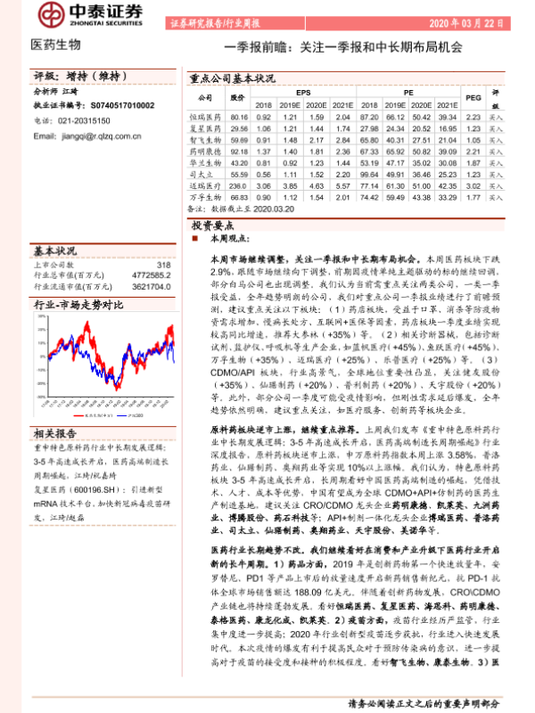 【中泰证券】【20200322】医药生物行业周报:一季报前瞻:关注一季报和中长期布局机会-11页