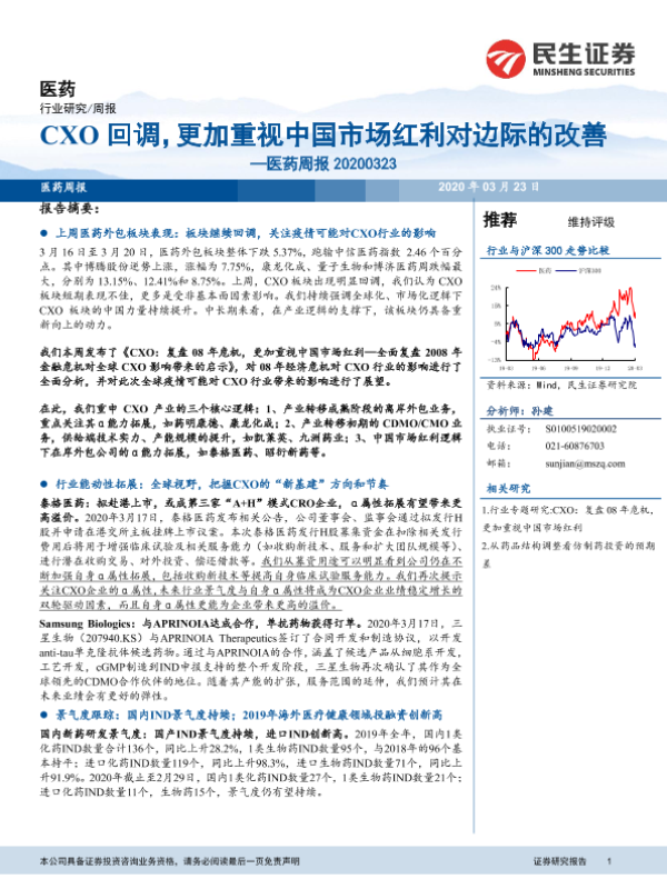 【民生证券】【20200323】CXO回调,更加重视中国市场红利对边际的改善-13页