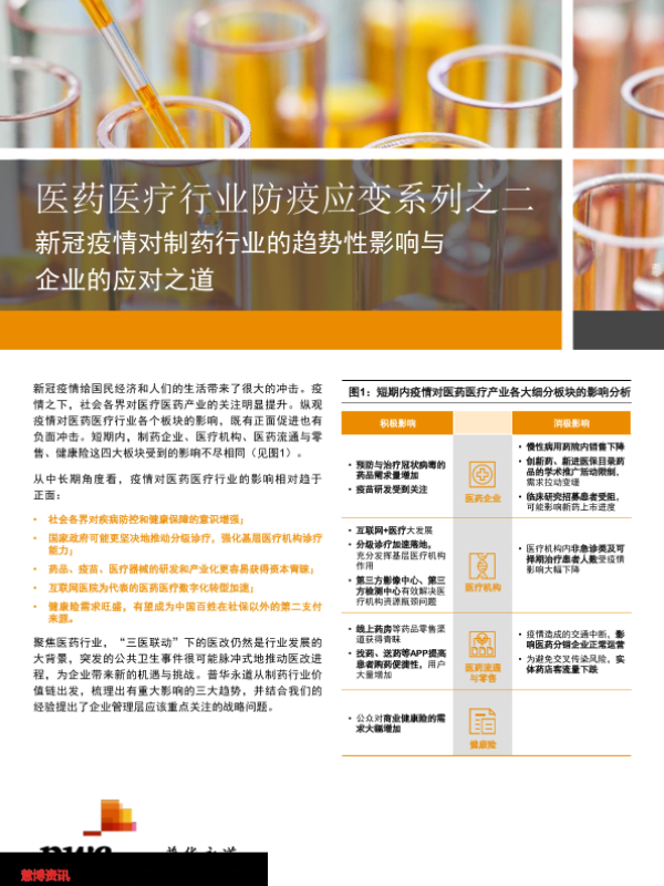 【普华永道中天会计师事务所】【20200328】医药医疗行业防疫应变系列之二:新冠疫情对制药行业的趋势性影响与企业的应对之道-6页