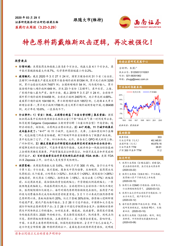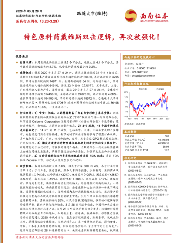 【西南证券】【20200329】医药行业周报:特色原料药戴维斯双击逻辑,再次被强化-22页