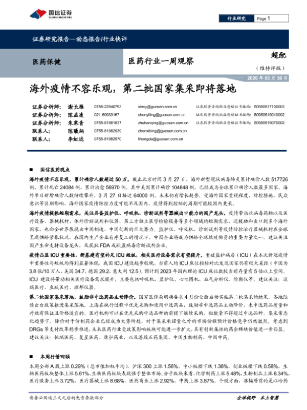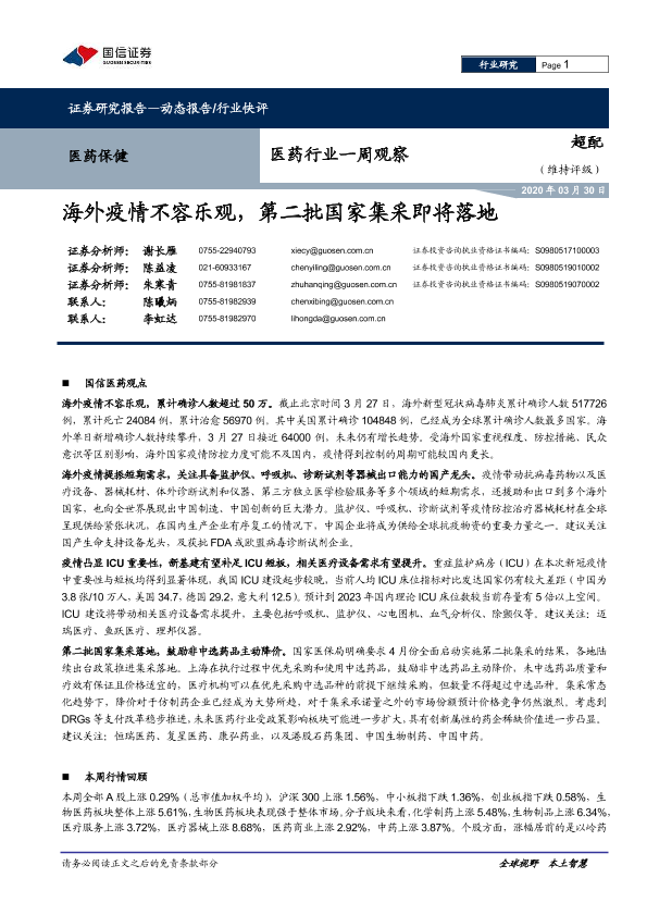 【国信证券】【20200330】医药行业一周观察:海外疫情不容乐观,第二批国家集采即将落地-9页