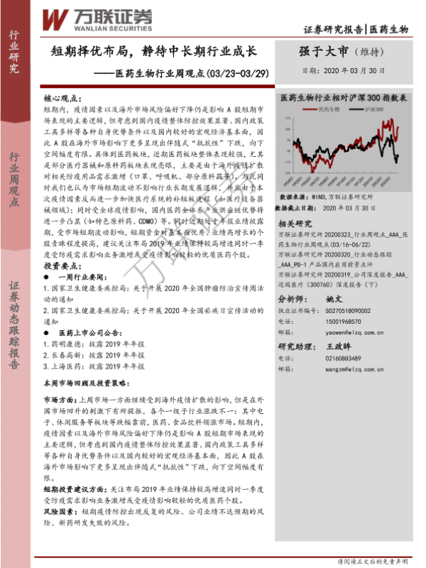【万联证券】【20200330】医药生物行业周观点:短期择优布局,静待中长期行业成长-8页