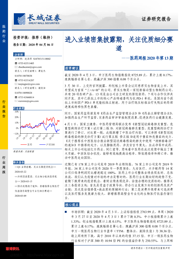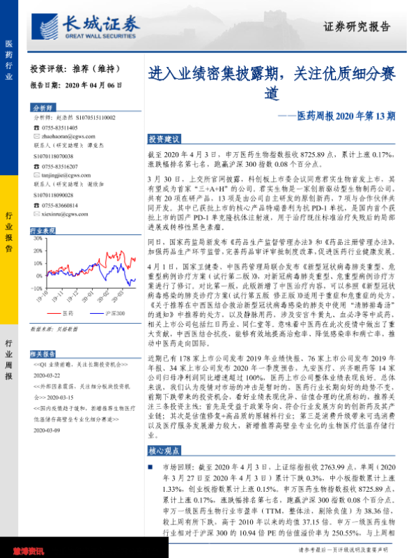 【长城证券】【20200406】进入业绩密集披露期,关注优质细分赛道-19页