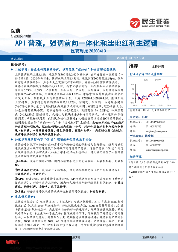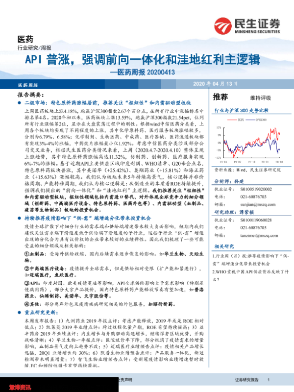 【民生证券】【20200413】API普涨,强调前向一体化和洼地红利主逻辑-20页