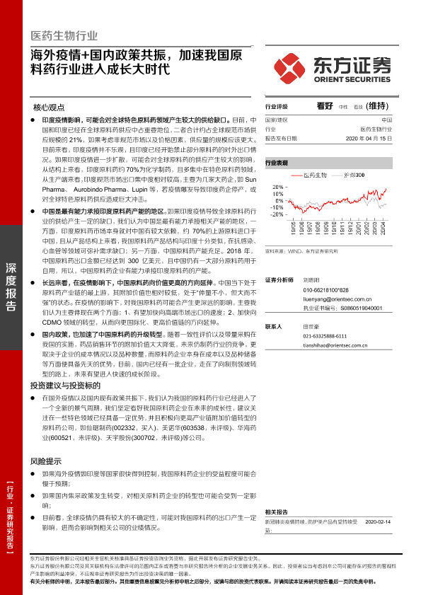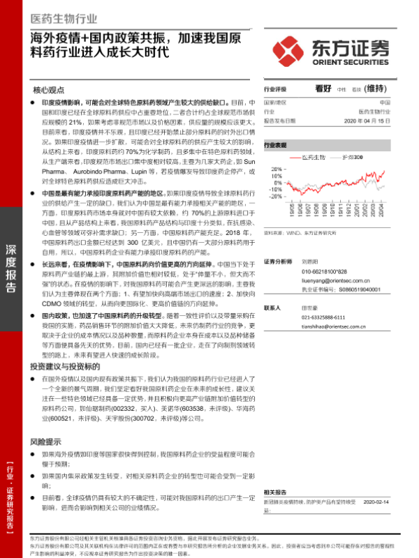 【东方证券】【20200415】海外疫情+国内政策共振,加速我国原料药行业进入成长大时代-20页