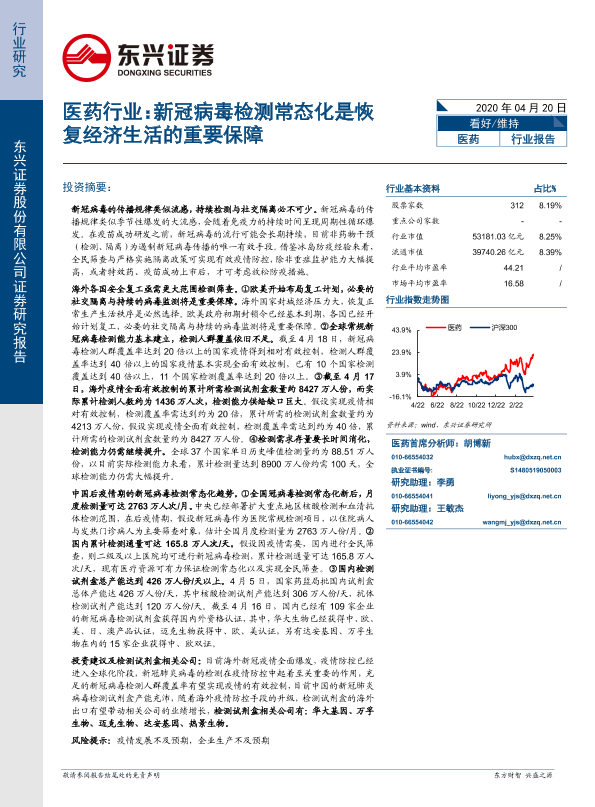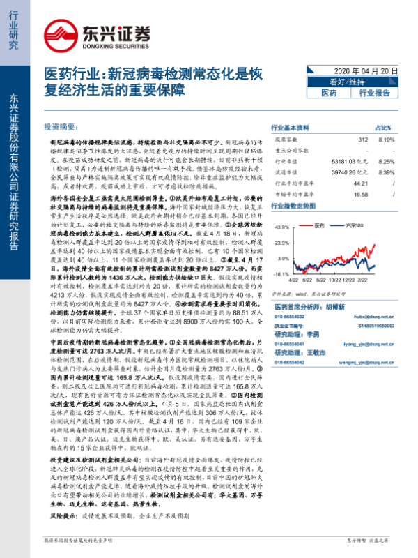 【东兴证券】【20200420】医药行业:新冠病毒检测常态化是恢复经济生活的重要保障-24页