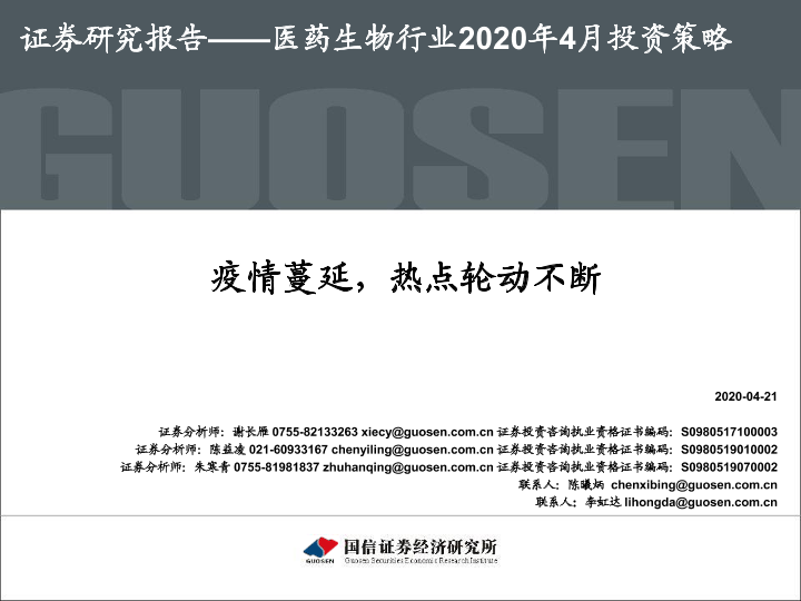 【国信证券】【20200421】医药生物行业2020年4月投资策略:疫情蔓延,热点轮动不断-30页