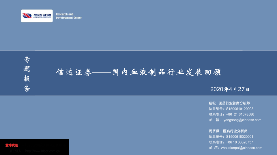 【信达证券】【20200427】国内血液制品行业发展回顾-28页