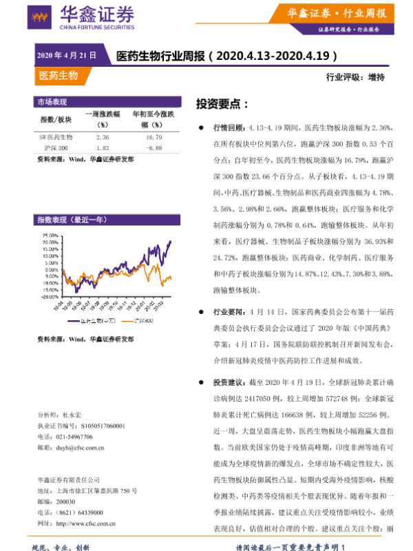 【华鑫证券】【20200421】医药生物行业周报-11页