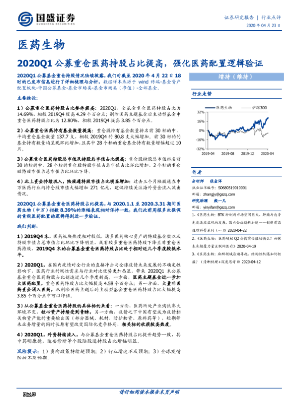 【国盛证券】【20200423】2020Q1公募重仓医药持股占比提高,强化医药配置逻辑验证-8页