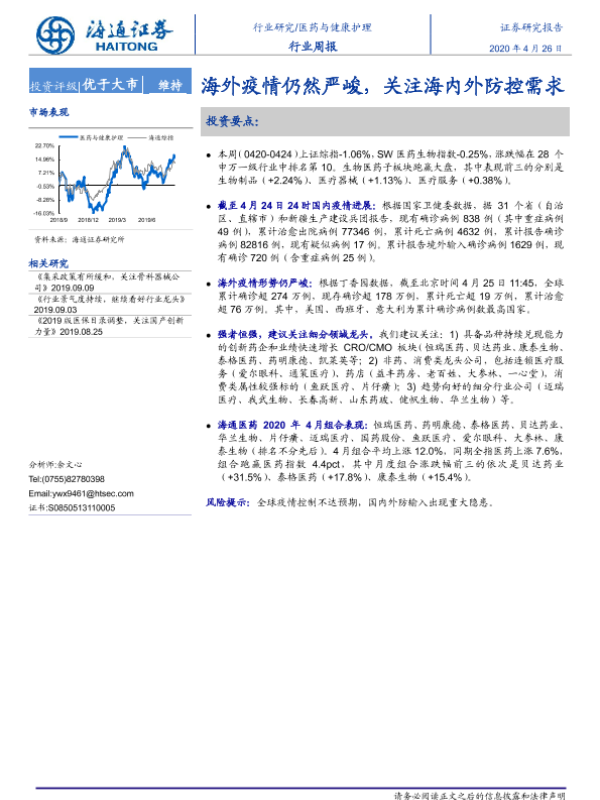 【海通证券】【20200426】医药与健康护理行业周报:海外疫情仍然严峻,关注海内外防控需求-8页