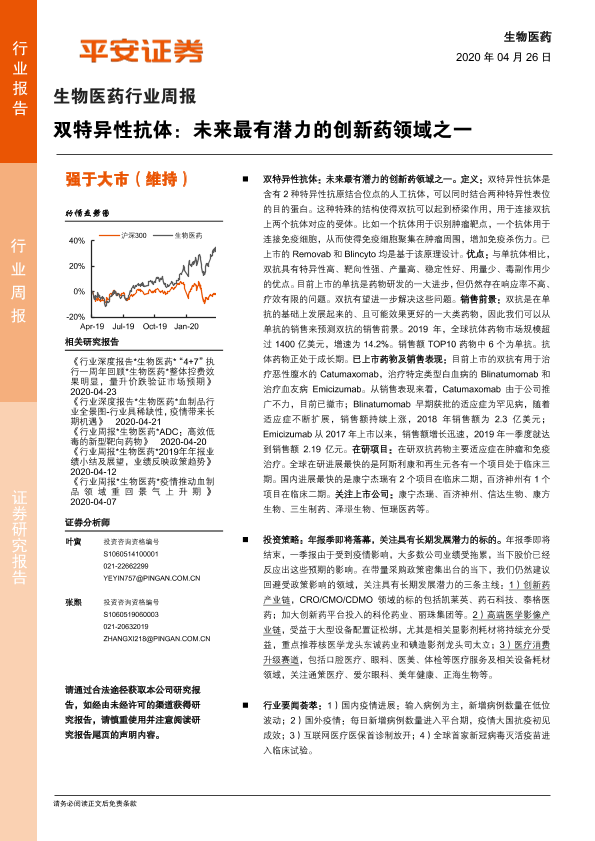 【平安证券】【20200426】双特异性抗体:未来最有潜力的创新药领域之一-6页