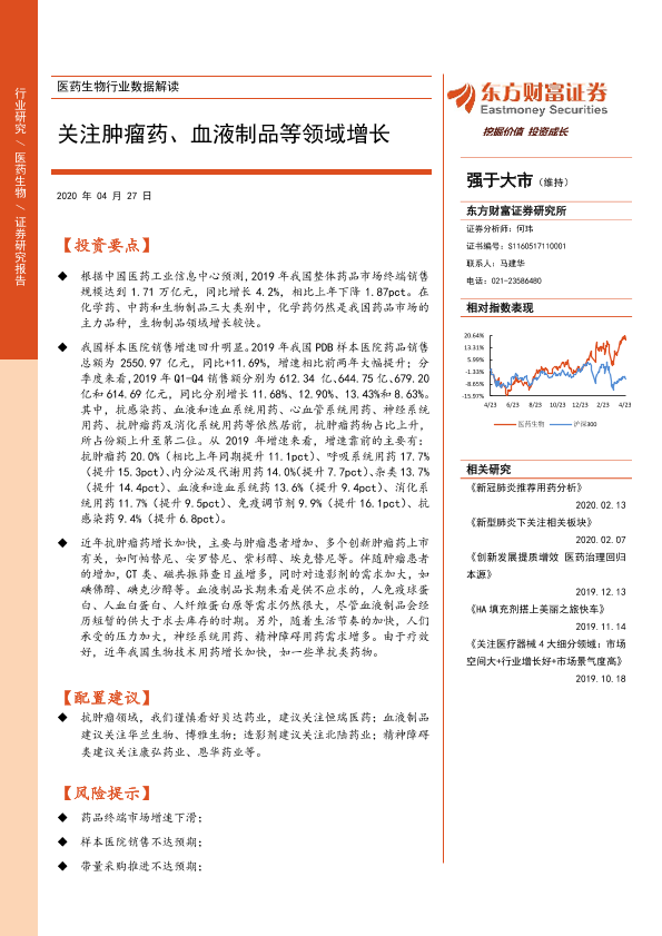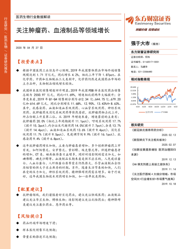 【东方财富证券】【20200427】医药生物行业数据解读:关注肿瘤药、血液制品等领域增长-11页