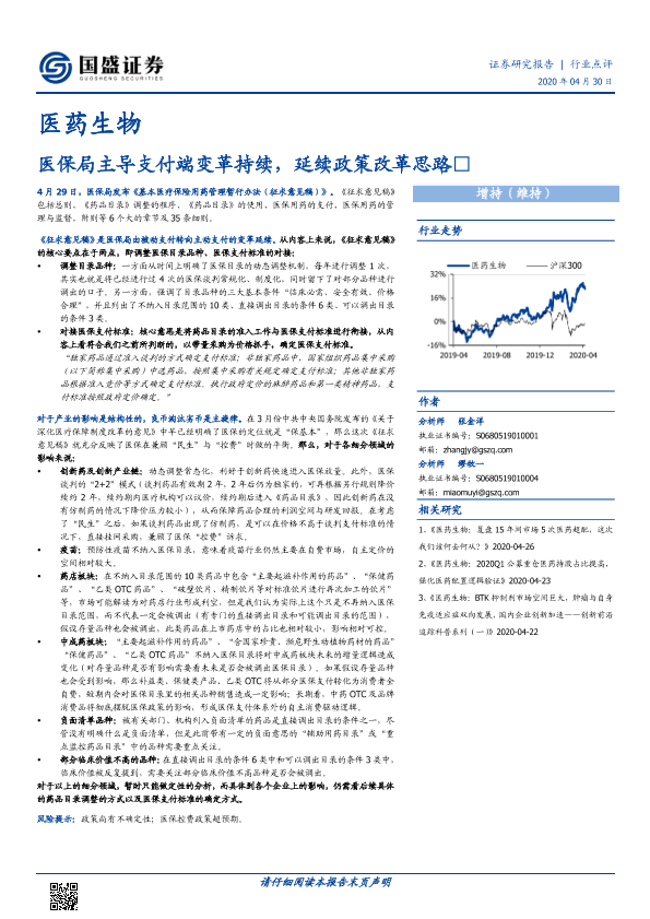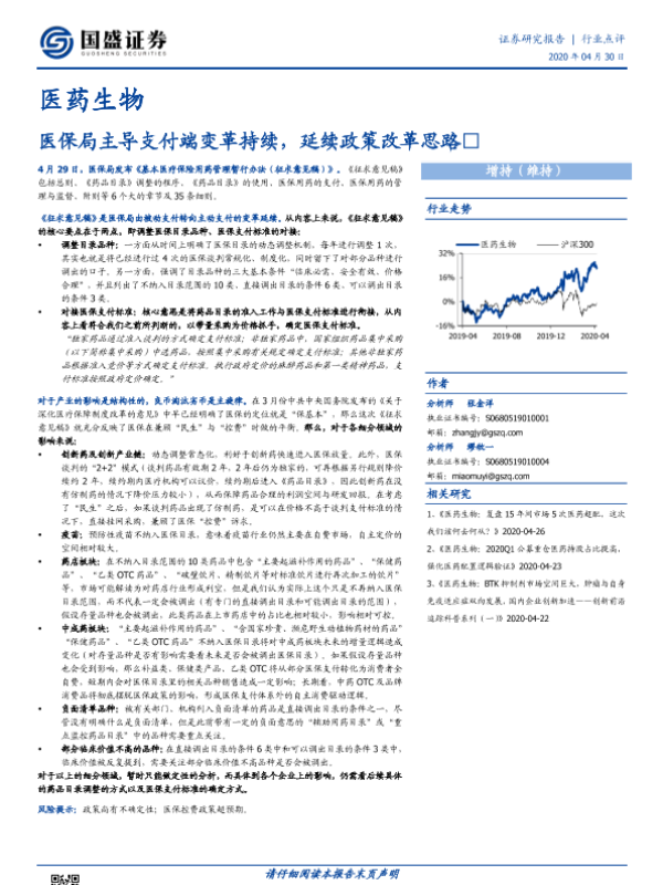 【国盛证券】【20200430】医药生物行业点评:医保局主导支付端变革持续,延续政策改革思路-7页