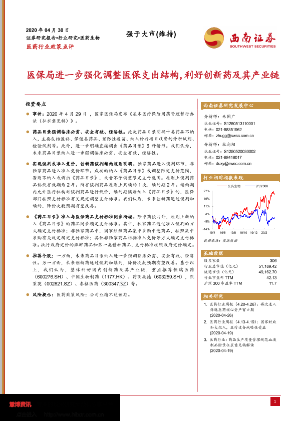 【西南证券】【20200430】医药行业政策点评:医保局进一步强化调整医保支出结构-8页