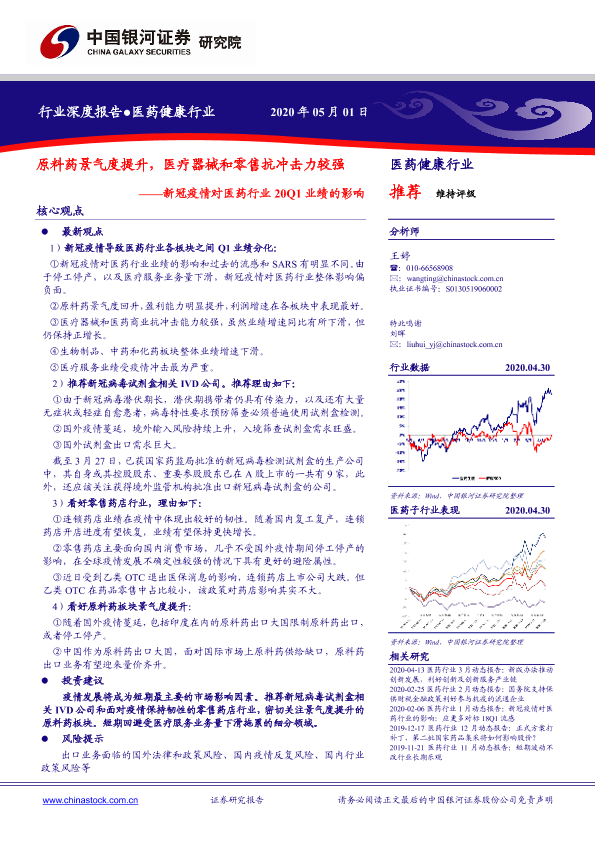 【银河证券】【20200501】新冠疫情对医药行业20Q1业绩的影响:原料药景气度提升,医疗器械和零售抗冲击力较强-23页