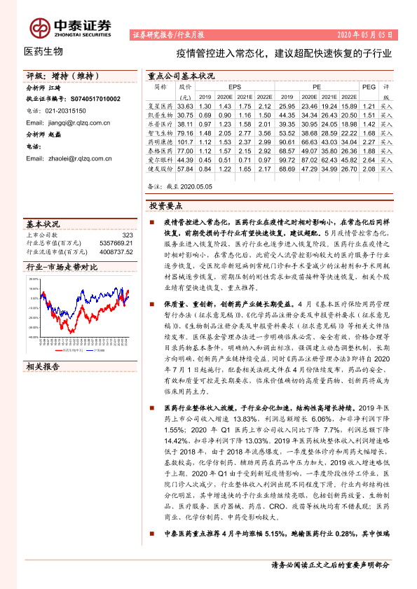 【中泰证券】【20200505】医药生物行业月报:疫情管控进入常态化,建议超配快速恢复的子行业-16页