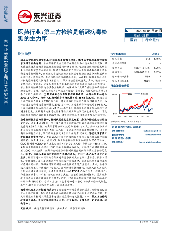 【东兴证券】【20200506】医药行业:第三方检验是新冠病毒检测的主力军-23页