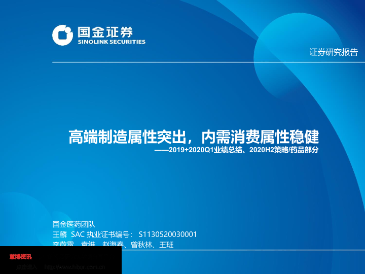 【国金证券】【20200506】2019+2020Q1业绩总结、2020H2策略 药品部分:高端制造属性突出,内需消费属性稳健-42页