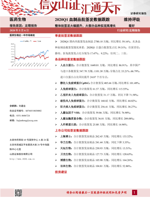 【山西证券】【20200506】2020Q1血制品批签发数据跟踪-30页