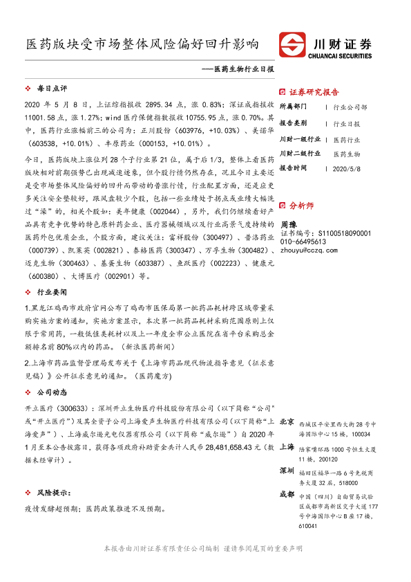 【川财证券】【20200508】医药生物行业日报:医药版块受市场整体风险偏好回升影响-3页