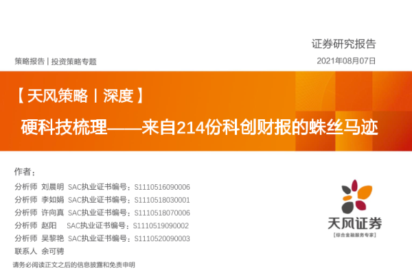 【天风证券】【20210807】来自214份科创财报的蛛丝马迹:硬科技梳理-41页