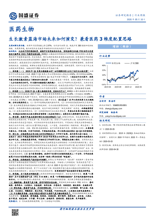 【国盛证券】【20200510】医药生物行业周报:生长激素蓝海市场未来如何演变?兼看医药3维度配置思路-26页