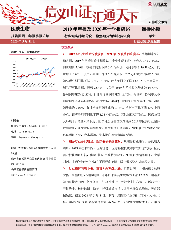 【山西证券】【20200511】医药生物:2019年报及2020年一季报综述-34页