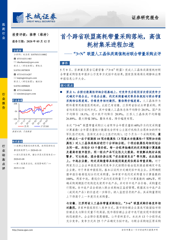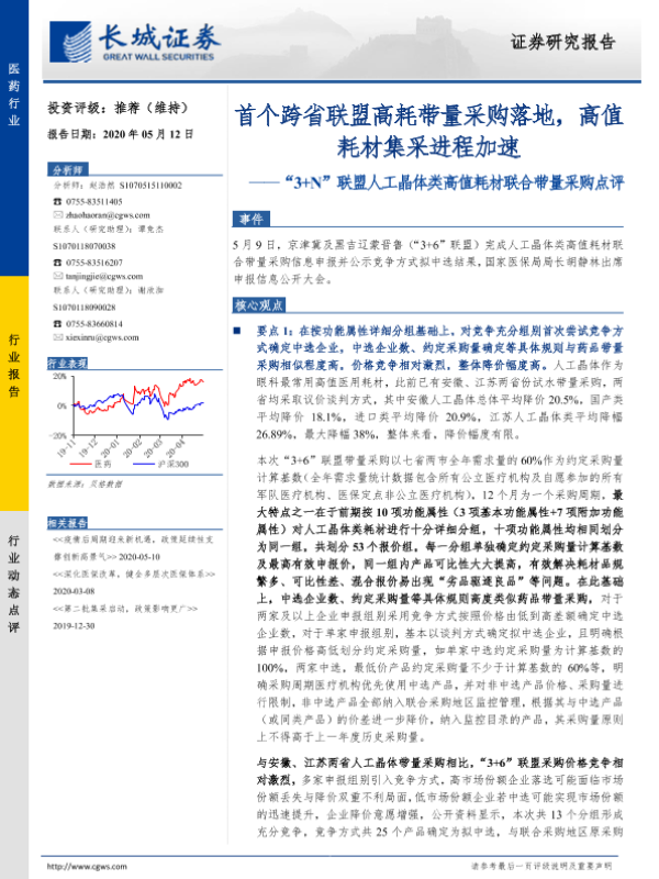 【长城证券】【20200512】“3+N”联盟人工晶体类高值耗材联合带量采购点评-6页