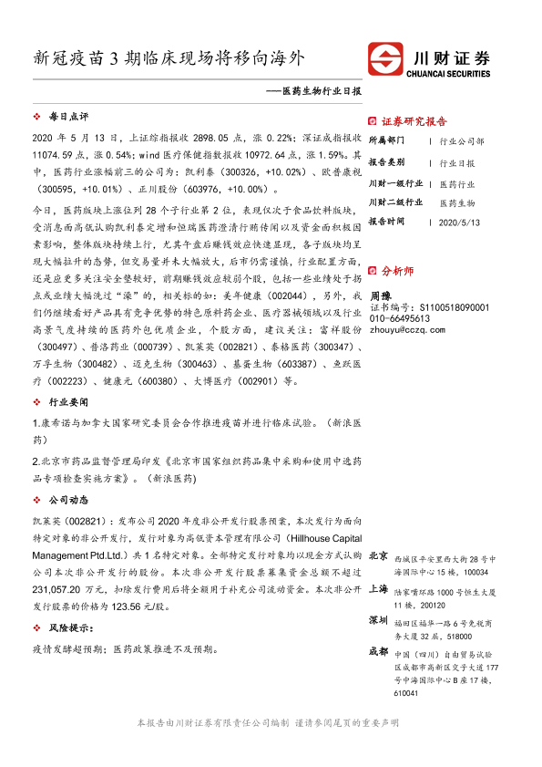 【川财证券】【20200513】医药生物行业日报:新冠疫苗3期临床现场将移向海外-3页