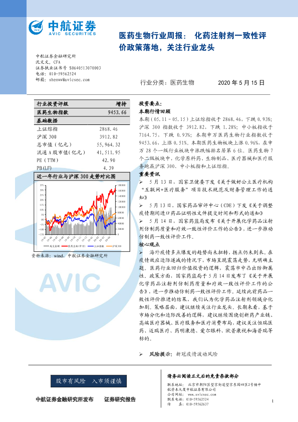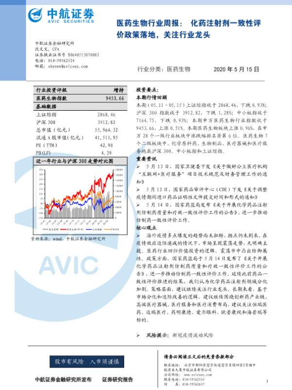 【中航证券】【20200515】医药生物行业周报:化药注射剂一致性评价政策落地,关注行业龙头-6页