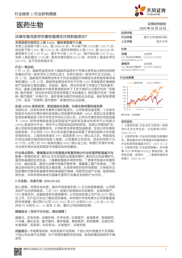 【天风证券】【20200518】医药生物行业研究周报:沃森生物当前存在哪些值得关注的积极变化?-26页