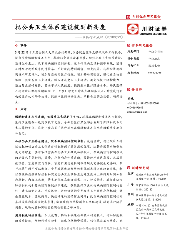 【川财证券】【20200522】医药行业点评:把公共卫生体系建设提到新高度-3页