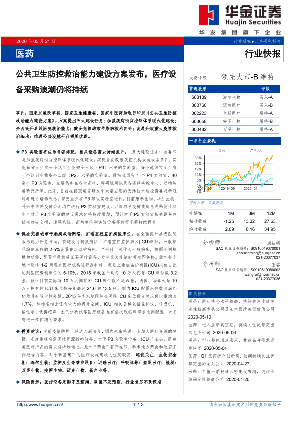 【华金证券】【20200521】公共卫生防控救治能力建设方案发布,医疗设备采购浪潮仍将持续-3页