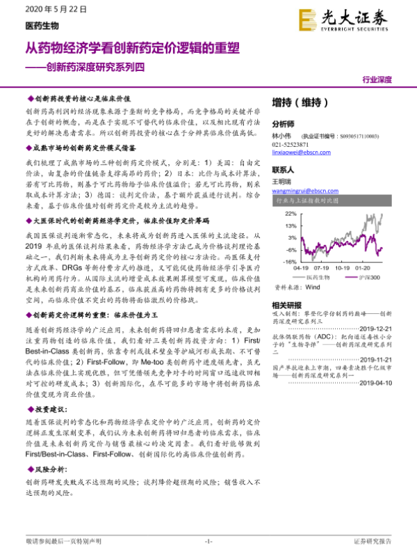【光大证券】【20200522】医药生物:创新药深度研究系列四:从药物经济学看创新药定价逻辑的重塑-37页