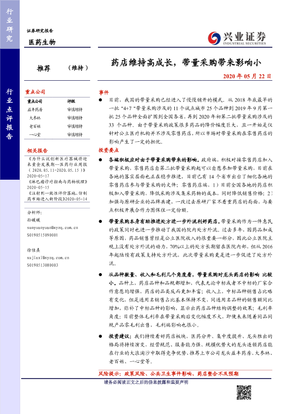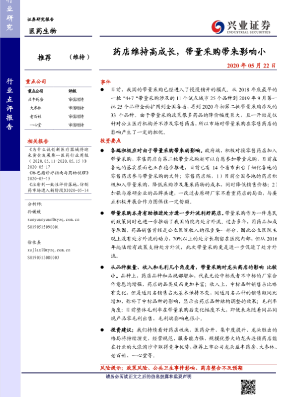 【兴业证券】【20200522】药店维持高成长,带量采购带来影响小-14页