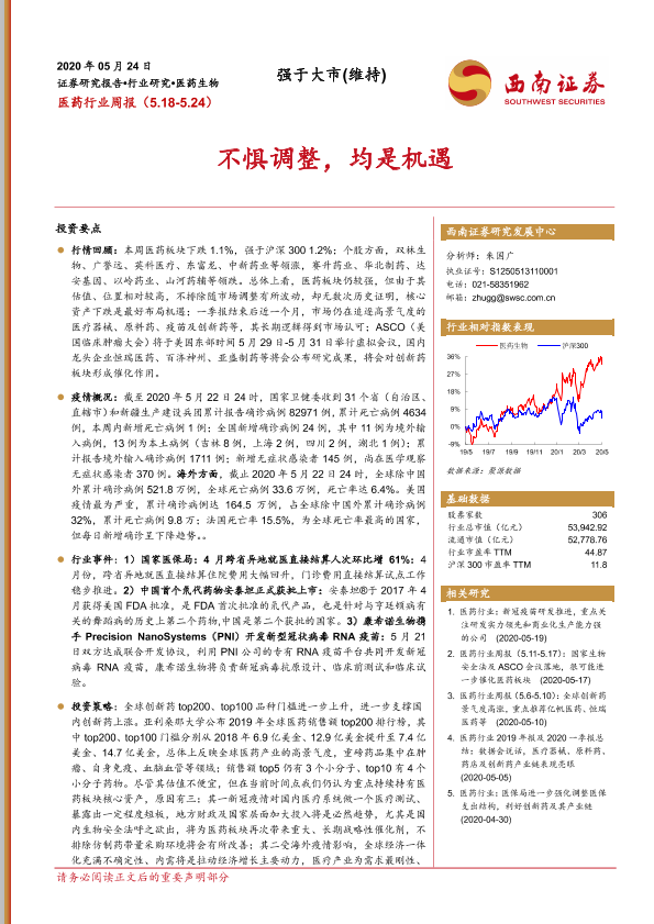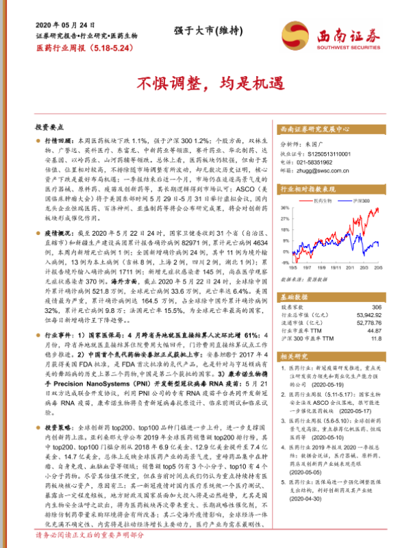 【西南证券】【20200524】医药行业周报:不惧调整,均是机遇-16页