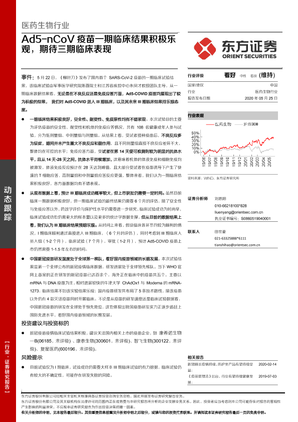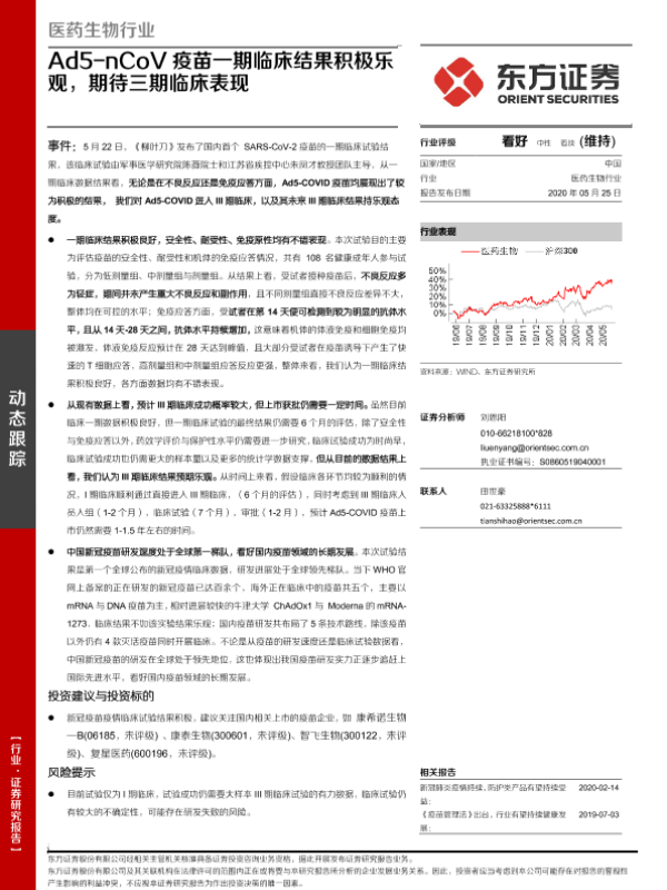 【东方证券】【20200525】Ad5-nCoV疫苗一期临床结果积极乐观,期待三期临床表现-10页