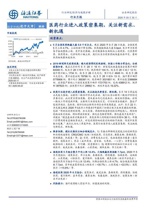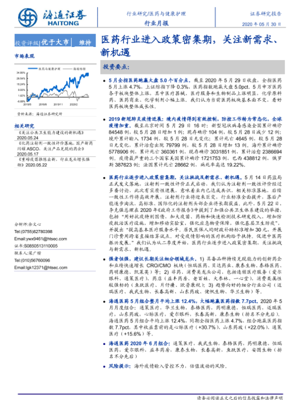 【海通证券】【20200530】医药与健康护理行业月报:医药行业进入政策密集期,关注新需求、新机遇-5页