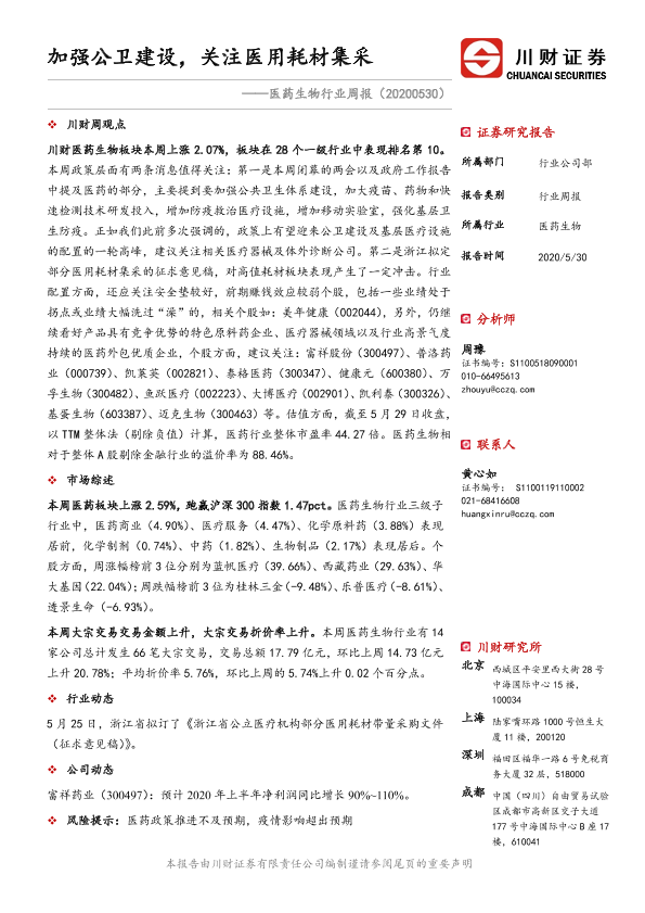 【川财证券】【20200530】加强公卫建设,关注医用耗材集采-13页