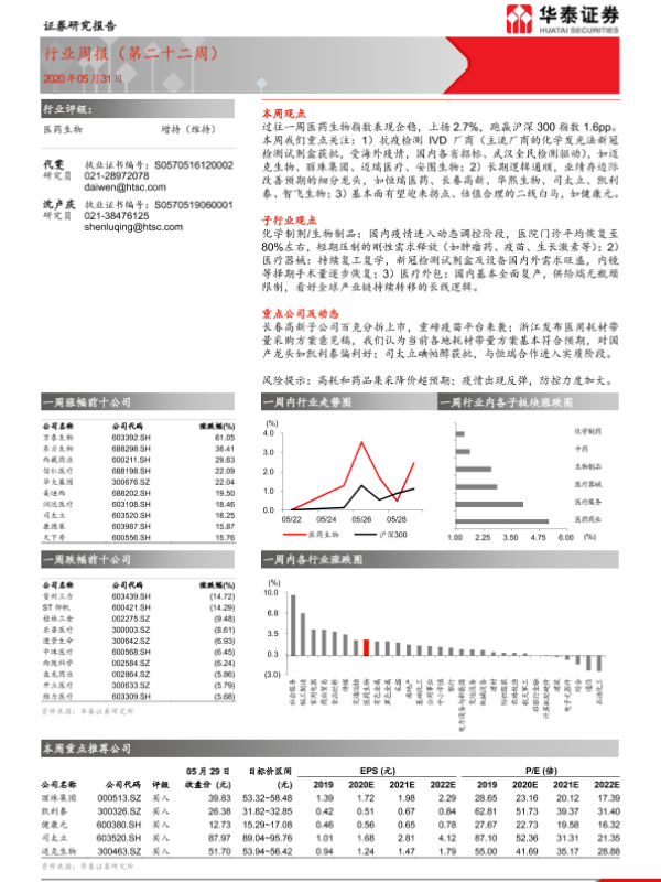 【华泰证券】【20200531】医药生物行业周报(第二十二周)-10页