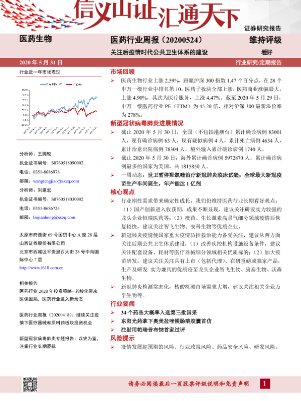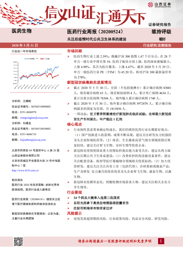 【山西证券】【20200531】医药行业周报:关注后疫情时代公共卫生体系的建设-10页