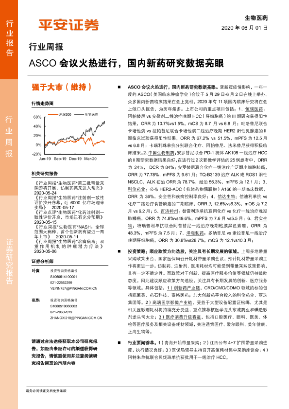 【平安证券】【20200601】生物医药行业周报:ASCO会议火热进行,国内新药研究数据亮眼-6页