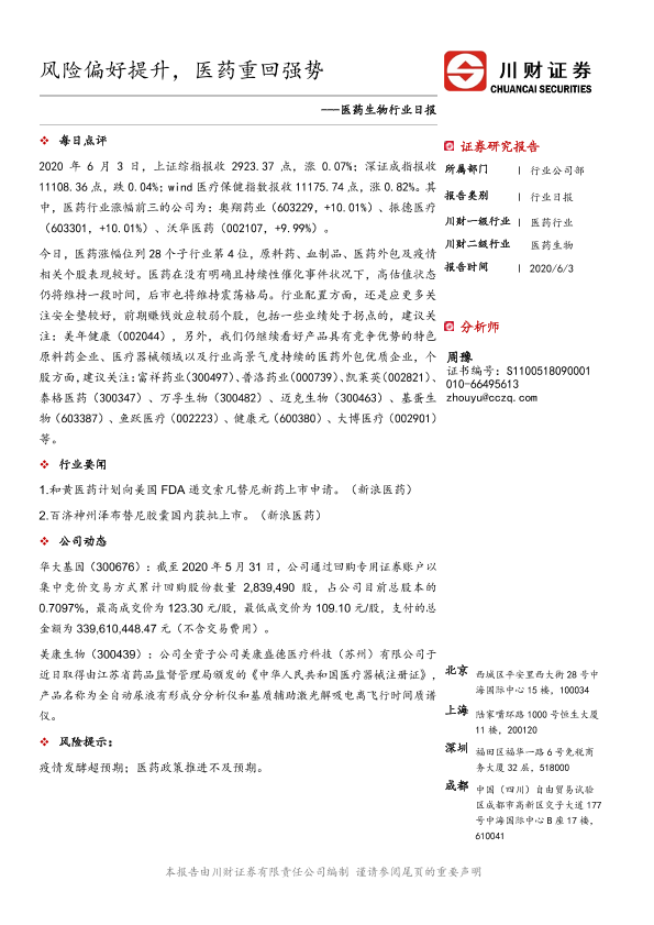 【川财证券】【20200603】医药生物行业日报:风险偏好提升,医药重回强势-4页