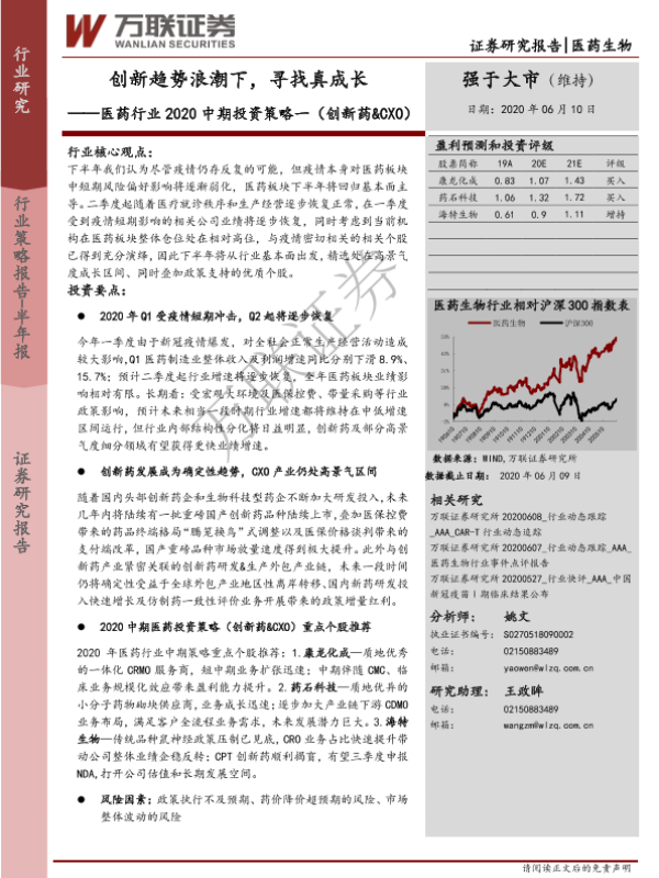 【万联证券】【20200610】医药行业2020中期投资策略一(创新药&CXO):创新趋势浪潮下,寻找真成长-24页