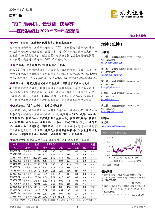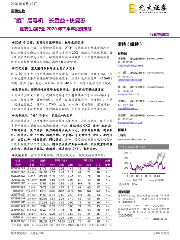 【光大证券】【20200612】医药生物行业2020年下半年投资策略:“疫”后寻机,长受益+快复苏-61页