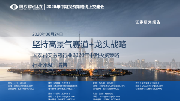 【国泰君安证券】【20200624】医药行业2020年中期投资策略:坚持高景气赛道+龙头战略-57页